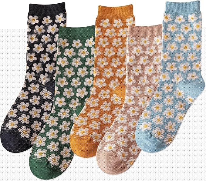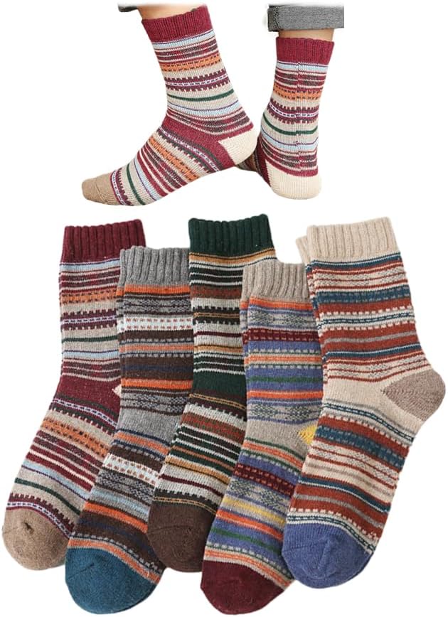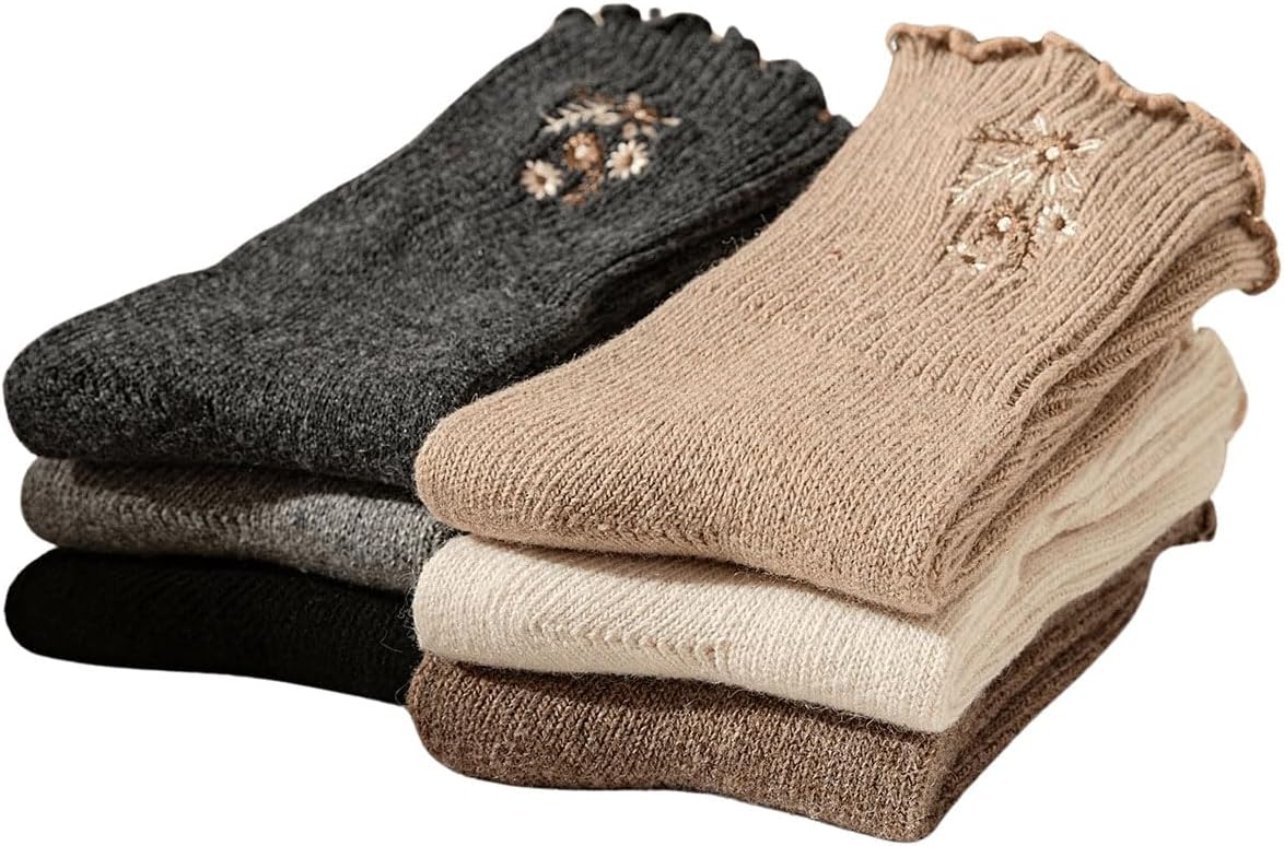 5/10 Pairs Wool Socks for Women Thick Knit Vintage Cute Floral Crew Socks