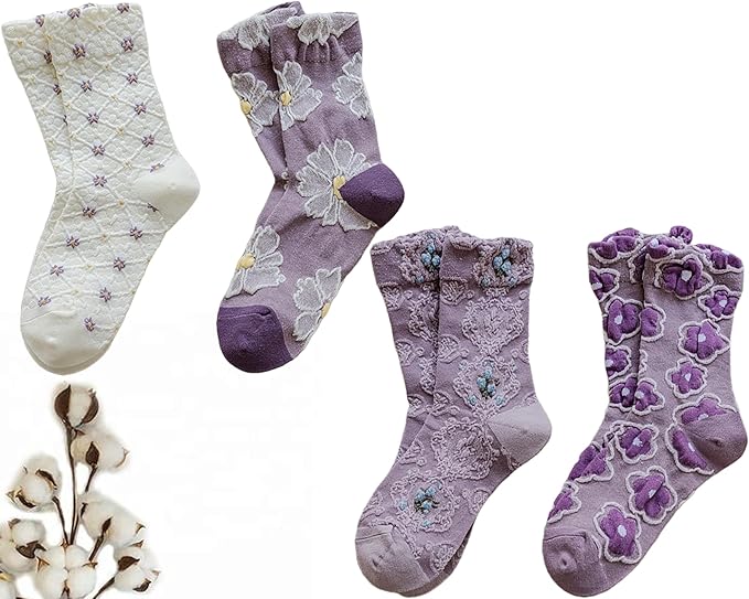 3-5 Pairs Womens Vintage Cozy Crew Socks Soft Cute Neutral Cotton Socks Exquisite Patterns Socks Gift