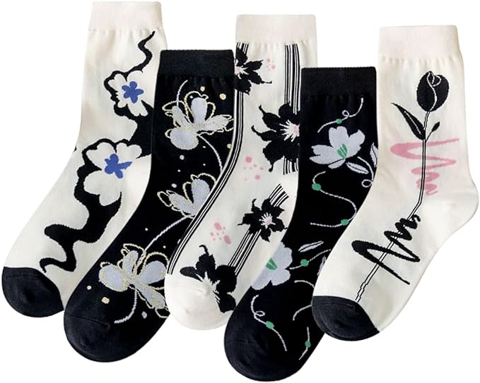 Floral Crew Socks – 5Pair Flower Graphic Soft Cotton Socks for Women, Teen Girls – for Sandals, – Cute Vibrant Colors