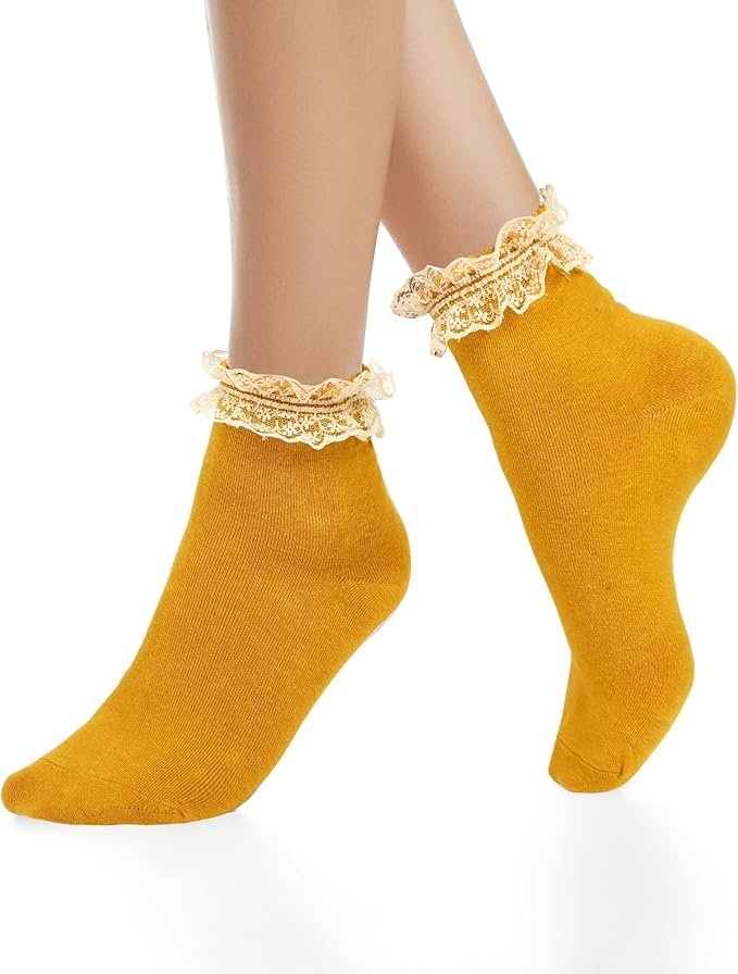 Women's Trim Ruffle Frilly Turn Cuff Socks Cute Vintage Dress Socks Crew Ankle Boot Socks